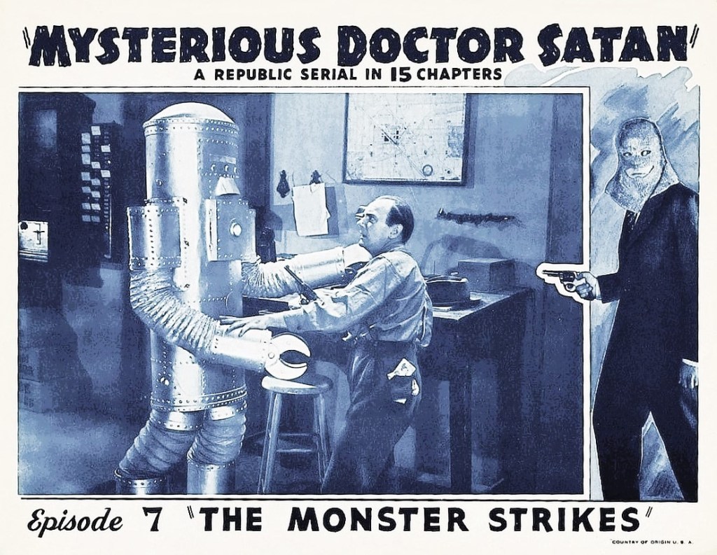 A sinister scientific genius called Dr. Satan (Eduardo Ciannelli) is determined to create an army of mechanical men with which to seize the “wealth and power of the nation”–but he needs a remote-control device invented by Professor Scott (C. Montague Shaw) in order to perfect his prototypical robot. Standing in Dr. Satan’s way is the “Copperhead,” a notorious outlaw from the Old West returned to life; this masked man is actually Bob Wayne (Robert Wilcox), who is determined to avenge Dr. Satan’s murder of his foster-father, the state governor–and also bent on rehabilitating the name of his actual father, the original Copperhead. Can this new Copperhead protect Scott, Scott’s daughter Lois (Ella Neal), and the world at large from the devilish mad doctor’s schemes?
