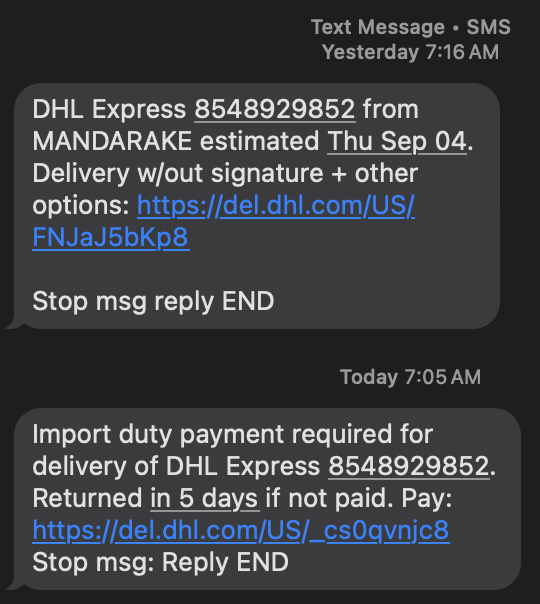 Woke up Saturday morning to a text message telling me an order I’d placed last Friday in Japan had arrived at Customs in NYC and was being held awaiting my paying an “Import duty”.