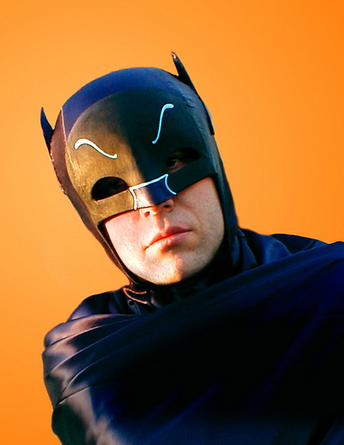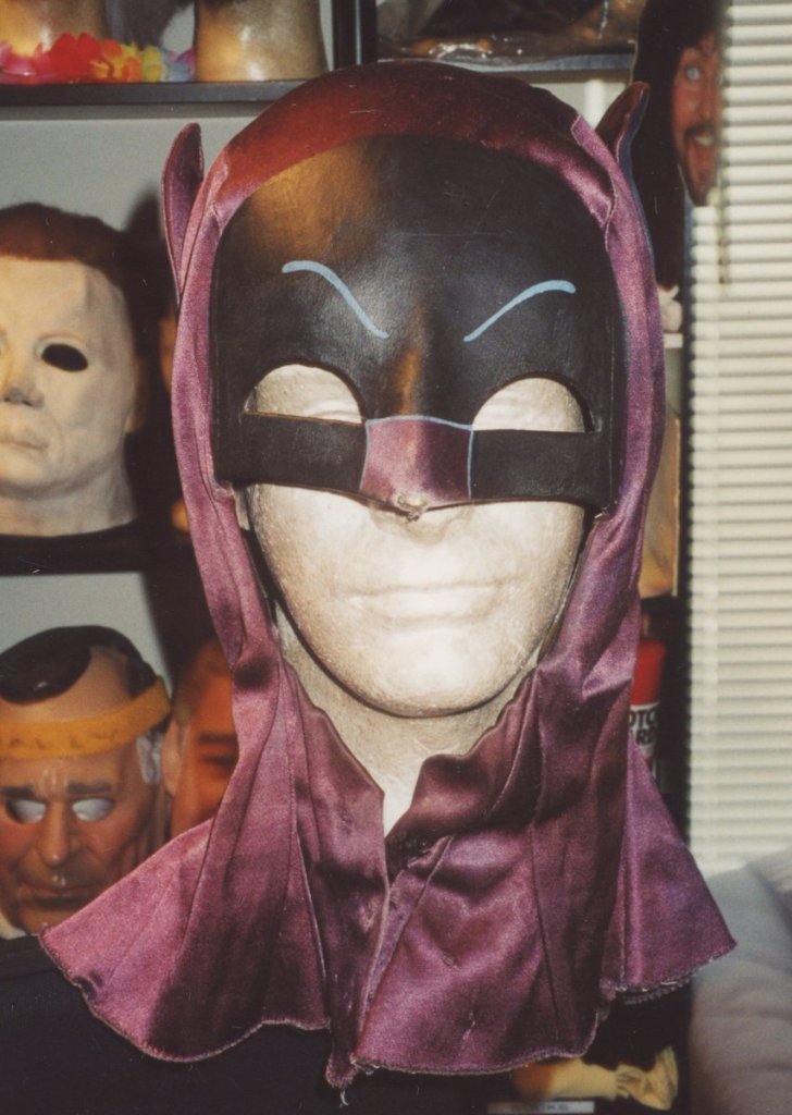 The first and for me the “best” of the reproduction cowls (and I’ll explain why that’s qualified) was the one my old pal Wally Wingert made. It had charming flaws like the head being slightly too round and the white markings being a little more prominent that the actual ones worn by Adam West on the show, but it hit all the points that looked right in my head and sure enough it was purple.